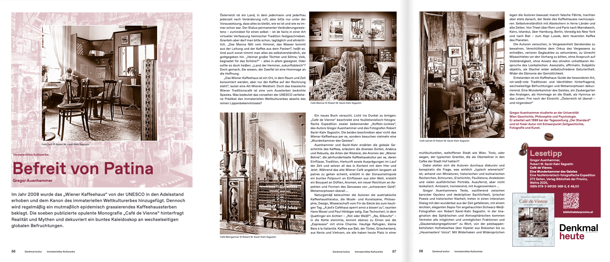 Im Jahr 2008 wurde das „Wiener Kaffeehaus“ von der UNESCO in den Adelsstand erhoben und dem Kanon des immateriellen Weltkulturerbes hinzugefügt. Dennoch wird regelmäßig ein mutmaßlich epidemisch grassierendes Kaffeehaussterben beklagt. Die soeben publizierte opulente Monografie „Café de Vienne“ hinterfragt Realität und Mythen und dekuvriert ein buntes Kaleidoskop an wechselseitigen globalen Befruchtungen.